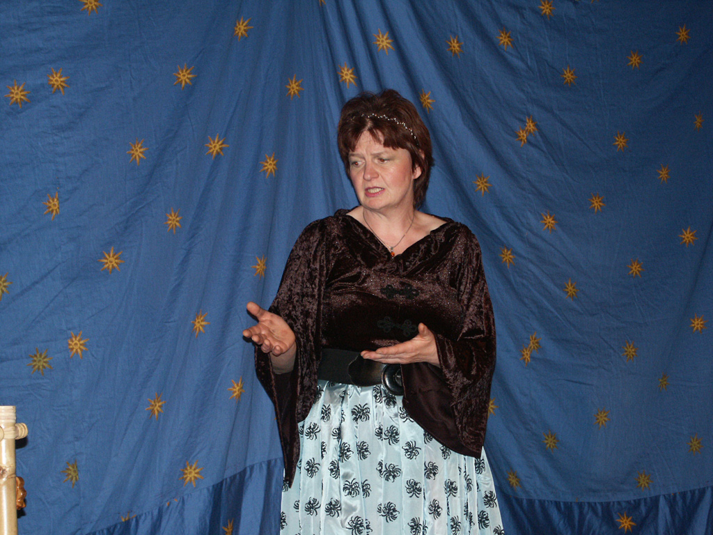 Nach jedem Kurs bekommen die Teilnehmerinnen als Hausaufgabe auf, für den nächsten Kurs ein Märchen zu Hause zu lernen und so gut wie möglich vorzubereiten. Dieses Märchen bildet dann die Grundlage für die Einzelarbeit an Sprache, Ausdruck und Erzählstil und ganz nebenbei füllt sich der Märchenfundus mit dem ich gleich privat oder öffentlich loslegen kann.